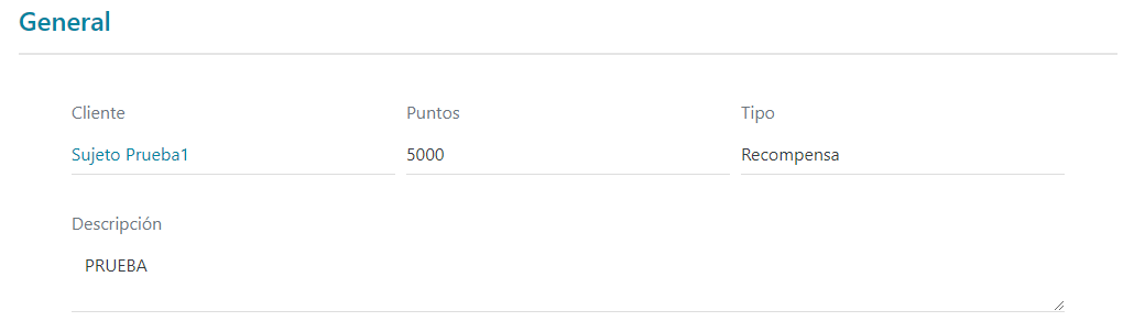 - Descripción: Muestra la descripción asociada a los puntos otorgados.