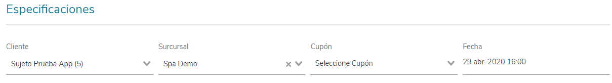 - Cupón: En este campo puedes elegir un cupón que se aplicará a la cita. La selección se realizará de los cupones disponibles del cliente y que sean aplicables al servicio solicitado en la cita.