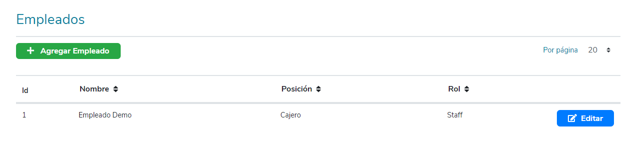 - Rol: Puedes asignar dos tipos de roles a los empleados.