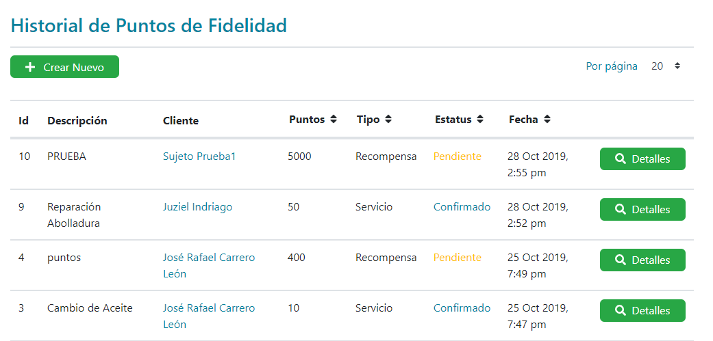 En esta sección se muestra el listado con el Historial de Puntos canjeados por tus clientes.