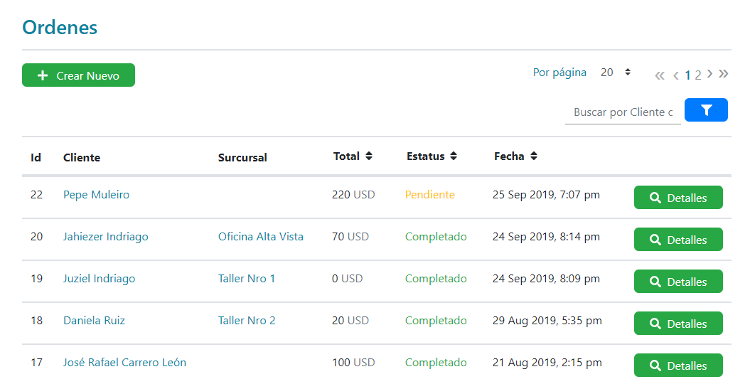 Y podrás crear una Orden nueva, haciendo clic en el botón "Crear Nuevo".