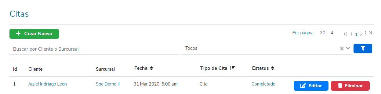 Y puedes crear una Cita nueva, haciendo clic en el botón "Crear Nuevo".