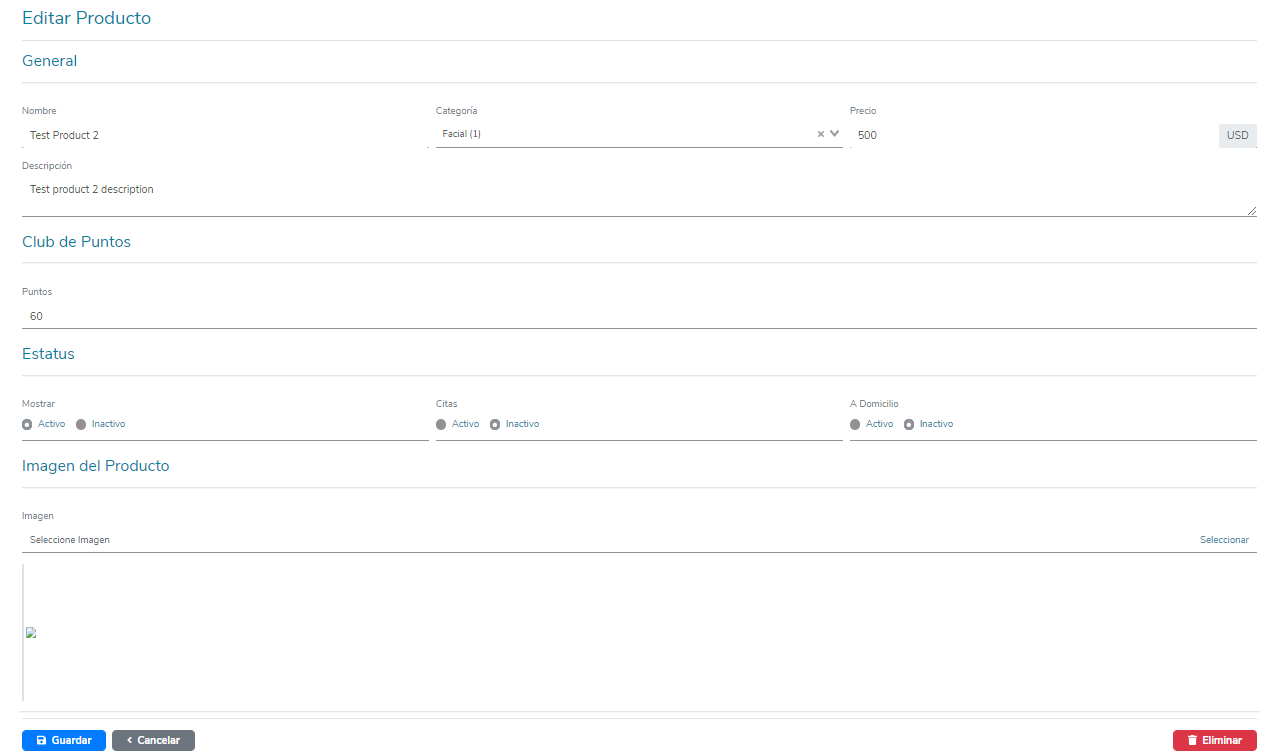 - Estatus: aquí podrás determinar el estatus Activo o Inactivo del producto dentro de la aplicación.