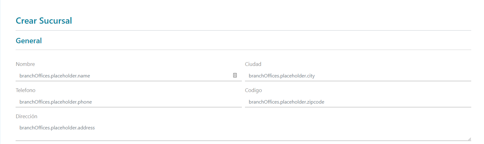 - Ciudad: Ingresa el nombre de la ciudad donde se ubica la sucursal