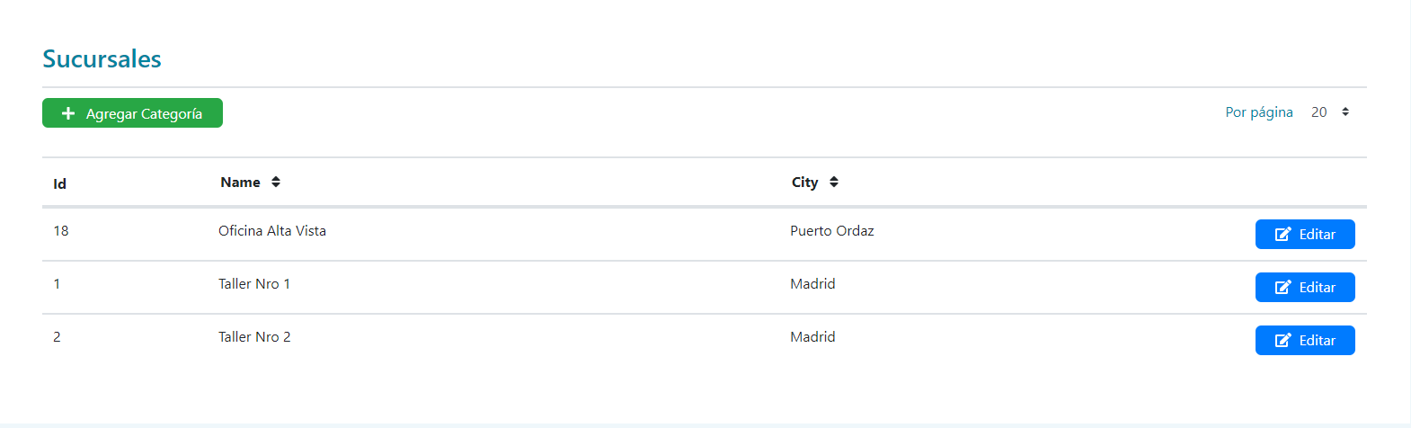 - Ciudad: Muestra el nombre de la ciudad donde se ubica la sucursal.