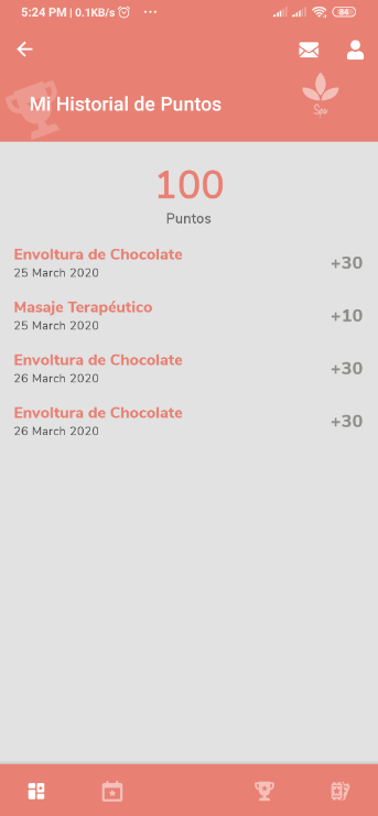 La sección de Mi Historial de Puntos, muestra el listado de consumo de servicios o productos que te han otorgado Puntos en el Club de Fidelidad.