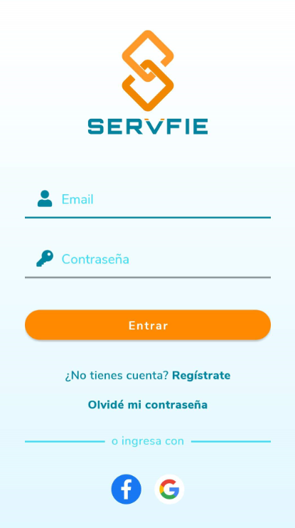 Una vez hayas descargado la aplicación Servfie a tu dispositivo móvil, al abrirla encontrarás con esta pantalla.